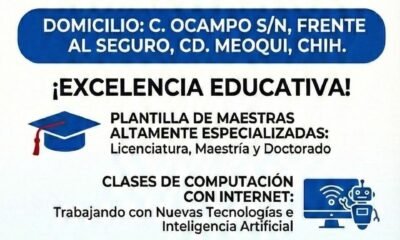 La escuela María G. de Ortiz, en Meoqui, anunció la apertura de inscripciones para el ciclo escolar 2026-2027. El plantel se localiza en la calle Ocampo...