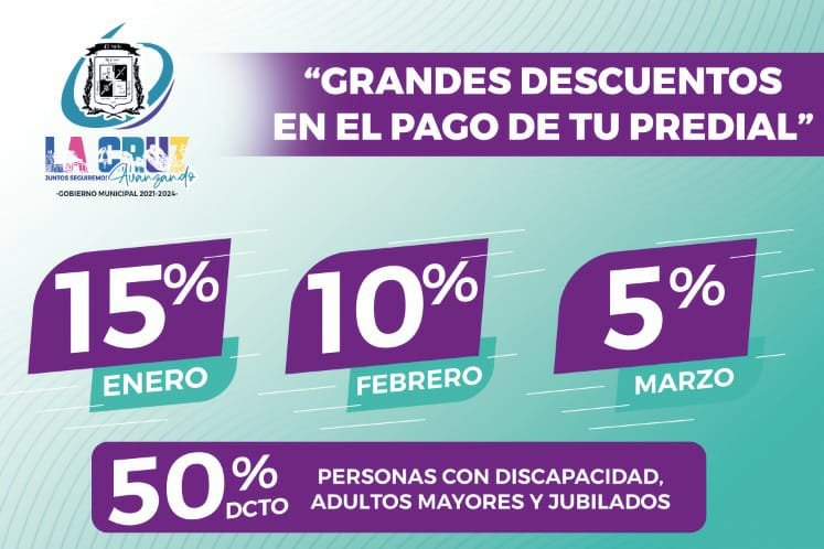 10% de descuento por pronto pago en febrero y 100% de condonación en recargos en La Cruz