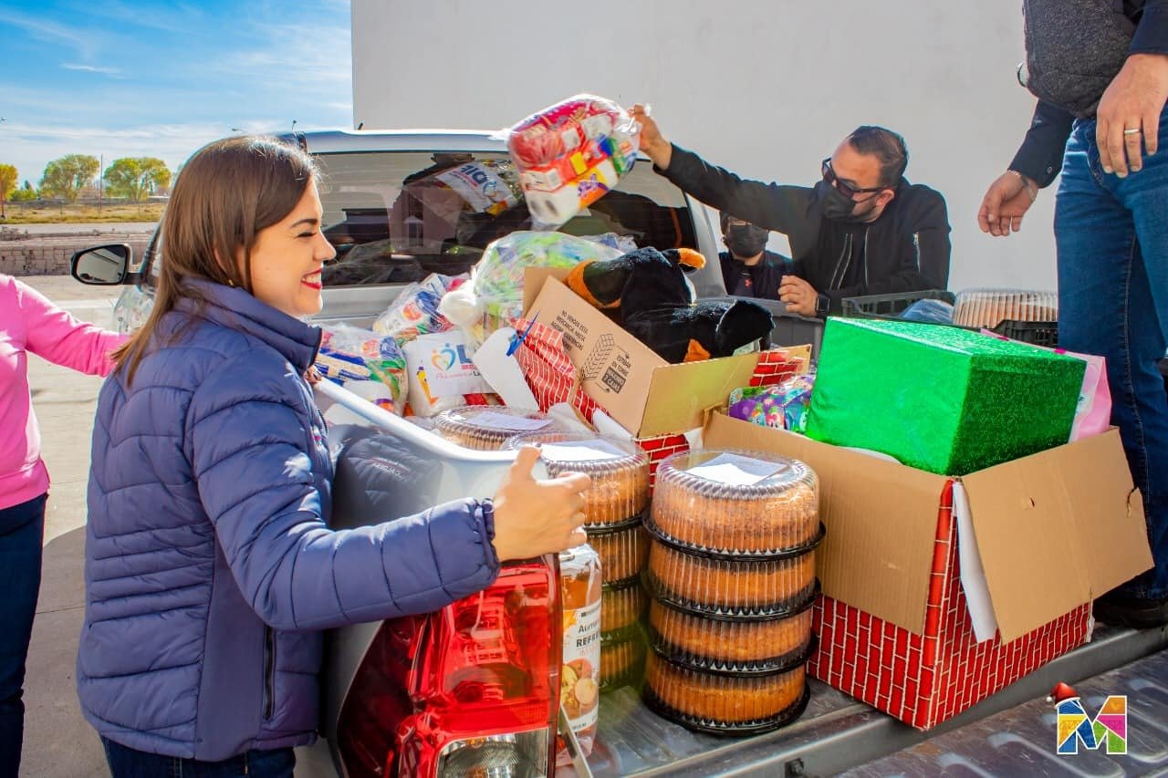 “Muchas gracias a toda la gente de Meoqui que nos apoyó con este programa del apadrinamiento, por supuesto que hoy estamos haciendo entrega de las cenas, esto nos permite convivir, se trata también de dar un poquito de los que tenemos, que a todos nos toque algo y que realmente más que el objeto material sea el motivo de compartir”, dijo de manera emotiva la presidenta municipal la mañana del viernes 24, al entregar las cenas de la campaña de apadrinamiento que lanzó el DIF Municipal.