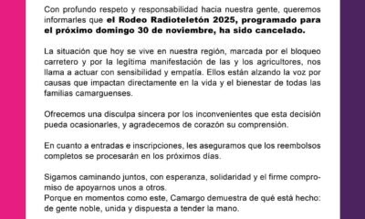 La organización del Radioteletón informó la tarde de este jueves la cancelación del rodeo que se tenía programado para el domingo 30 de noviembre. A través...