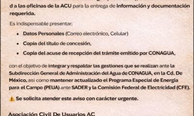 La Asociación Civil de Usuarios convoca a todos los usuarios que cuenten con trámite individual de aprovechamiento de aguas subterráneas ante la Comisión Nacional del Agua...