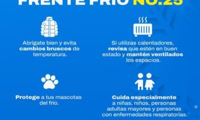 Se prevén temperaturas mínimas de hasta 4° y máximas de 17° en la región Ante la llegada del Frente Frío número 25, la Dirección de Seguridad...