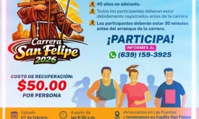El Gobierno Municipal de Meoqui, a través del Instituto Municipal de Deporte y Juventud (IMDJ), invita a la ciudadanía a participar en la Carrera San Felipe...