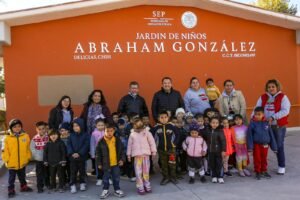 Durante esta entrega, acompañaron al edil, el Profesor Ricardo Robles, subdirector de Desarrollo Humano y Bien Común, el Ingeniero Alfonso Rodríguez Director de obras públicas, la Maestra Guadalupe Magallanes directora del preescolar Abraham González y el alumno Sergio Jiménez.