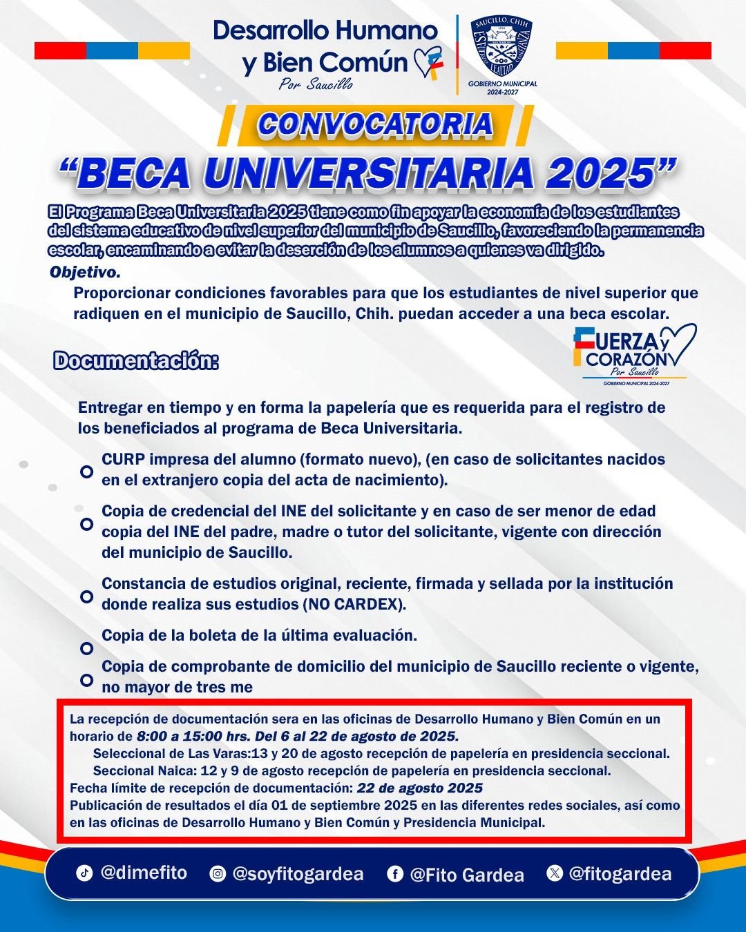 A partir del 6 de agosto, Fito Gardea abre convocatoria de becas universitarias para apoyar los sueños de la juventud Saucillense.