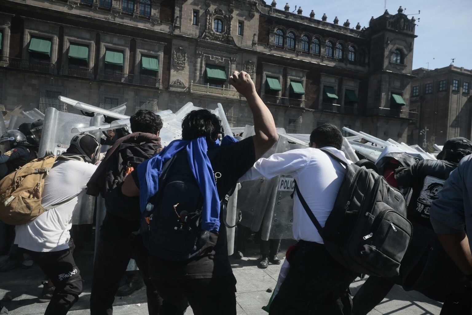 La Marcha de la ‘Generación Z’ contó con cerca de 20 mil asistentes e inició de manera pacífica en el Ángel de la Independencia de la CDMX y terminó en un enfrentamiento entre policías y un grupo de encapuchados, identificado como el ‘bloque negro’, justo a las puertas de Palacio Nacional.