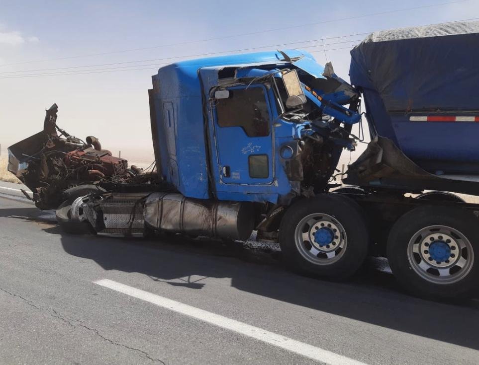 Las rachas de viento alcanzaron los 100 km/h lo que provoco la poca visibilidad en el tramo de la carretera lo que ocasiono que dos trailers chocaran entre sí.