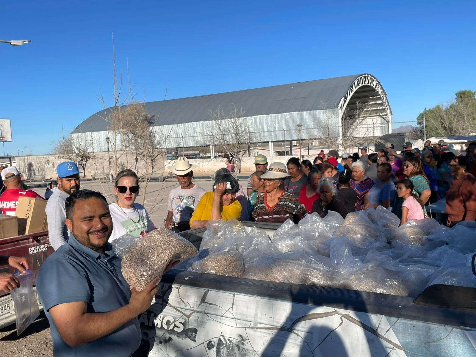 Corral explicó que actualmente se encuentran recorriendo la llamada “ruta uno” o “ruta vieja”, en la que se atienden comunidades como San Francisco de Conchos, San Ignacio, La Cruz, Corraleño y Floreño, donde se distribuyen cerca de 100 despensas elaboradas a partir del rescate de alimentos.