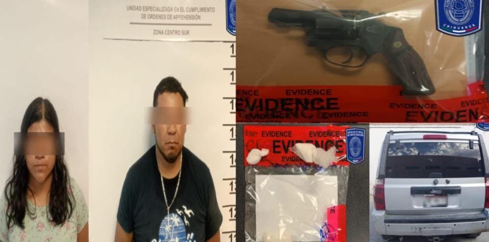 La Agencia Estatal de Investigación adscritos a la Fiscalía de Distrito Zona Centro en el municipio, hicieron la detención en la carretera a la ciudad de Chihuahua, a dos personas con posesión de droga y también un arma de fuego.