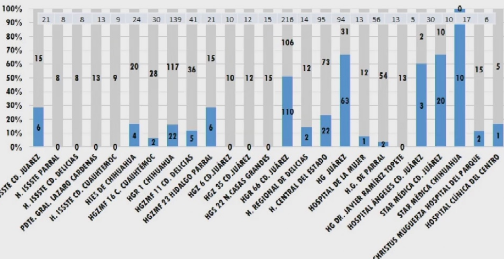 De los hospitales públicos, el que está a su mayor capacidad de ocupación es el hospital general de Juárez con 63 de 94 camas ocupadas.