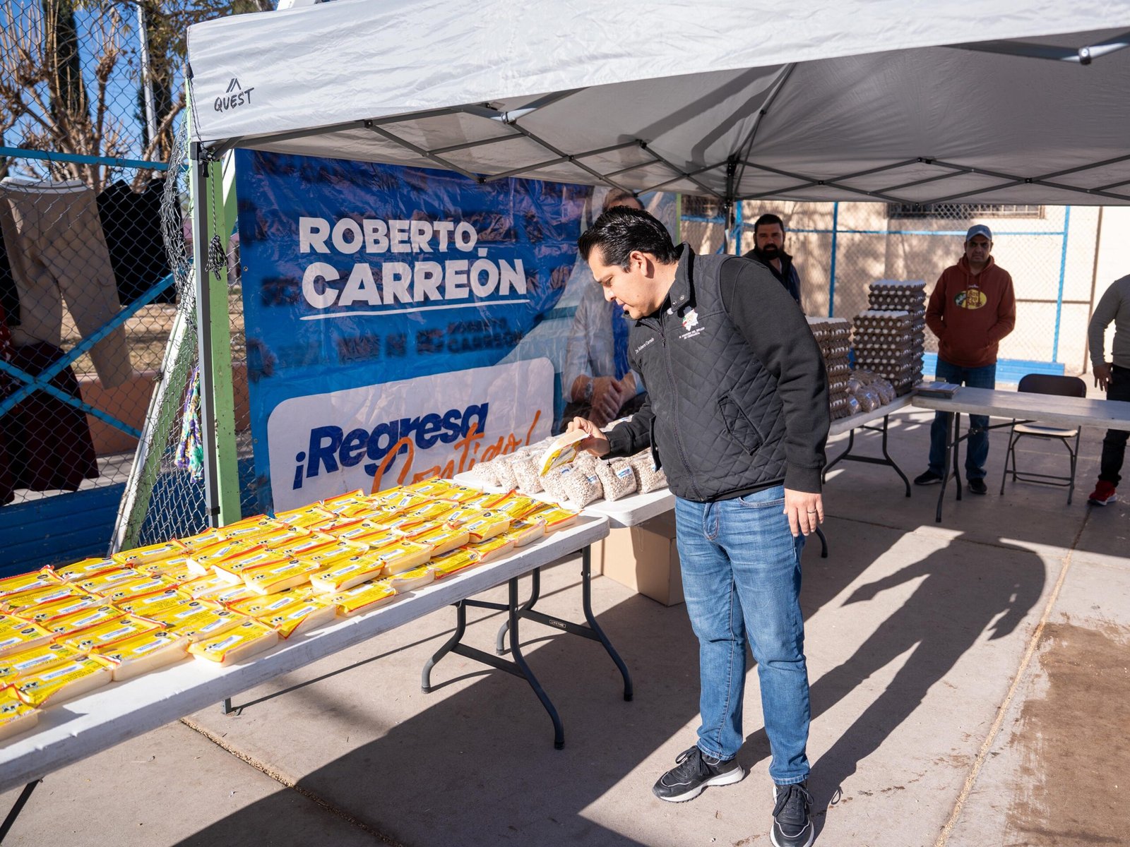 Este sábado, la colonia K92 recibió una nueva edición del programa Mercarreón, donde el diputado Roberto Carreón acercó frijol, queso y huevo a precios accesibles y subsidiados para apoyar el gasto semanal de las familias.