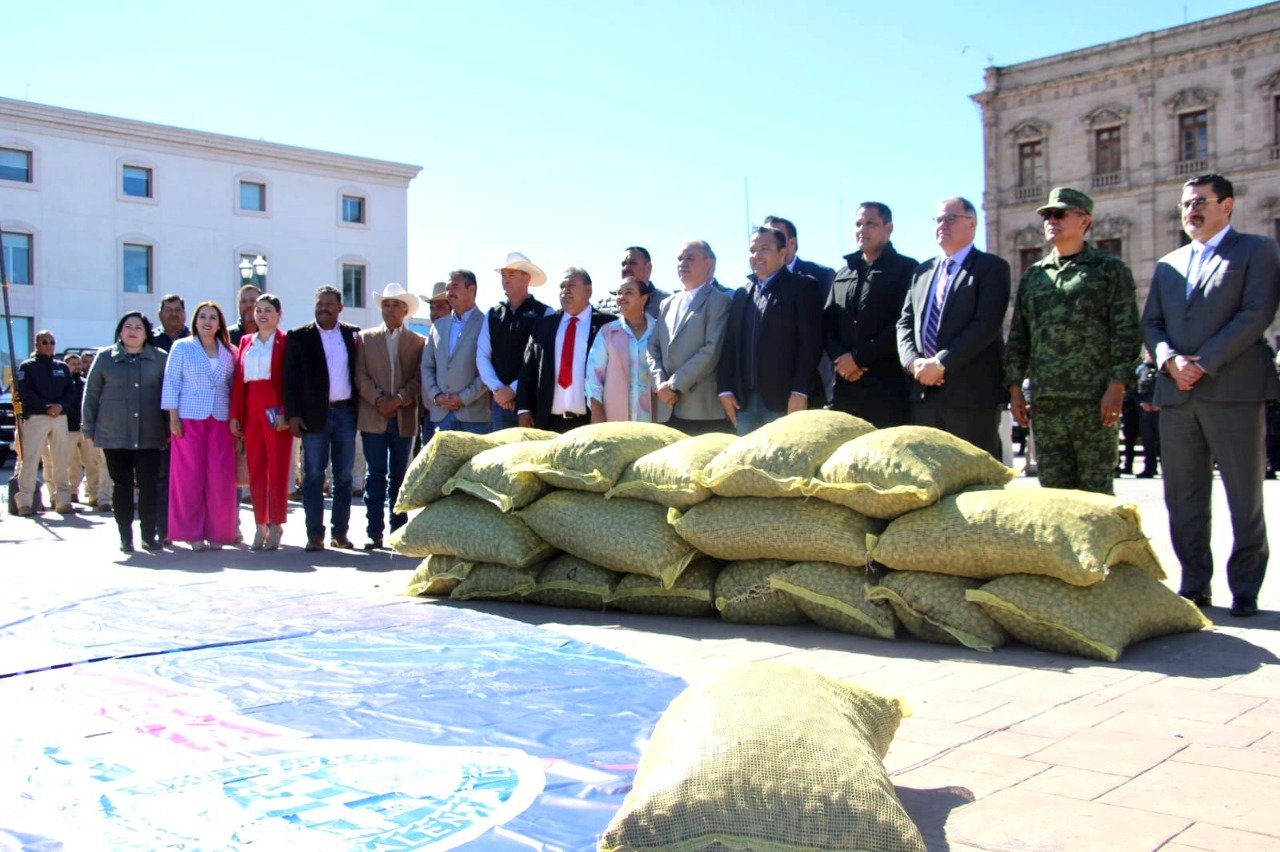 Esta mañana, la alcaldesa de Saucillo, Aidé López de Anda, acompañó a la gobernadora del estado, Maru Campos, al arranque oficial del Operativo de Protección a la Cosecha de Alto Valor 2022.