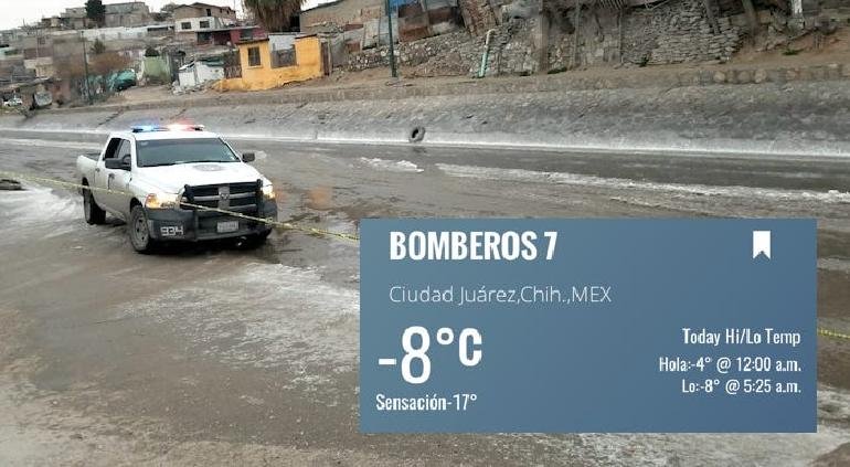 Debido al frente frío número 19, ciudad Juárez registró un amanecer con una temperatura de -8 grados centígrados, con una sensación térmica de -17 grados debido a las fuertes ráfagas de viento que se presentan.