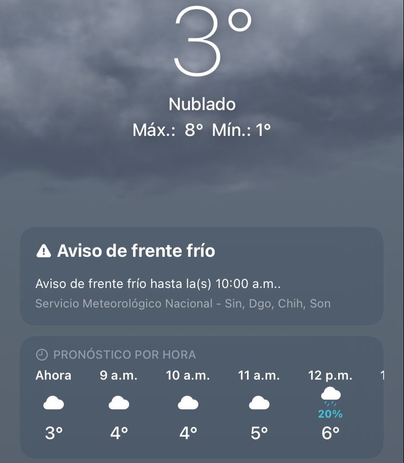 Amanece la región con sensación térmica de -1°; se espera máxima de 8° y precipitaciones