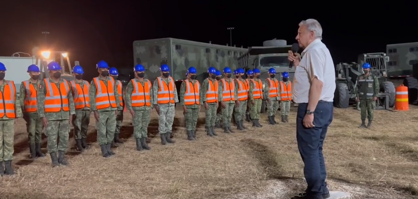 López Obrador agradeció el apoyo del personal de la Secretaría de la Defensa Nacional (Sedena) y les recordó que las obras del Tren Maya deben estar terminadas en diciembre de 2023.