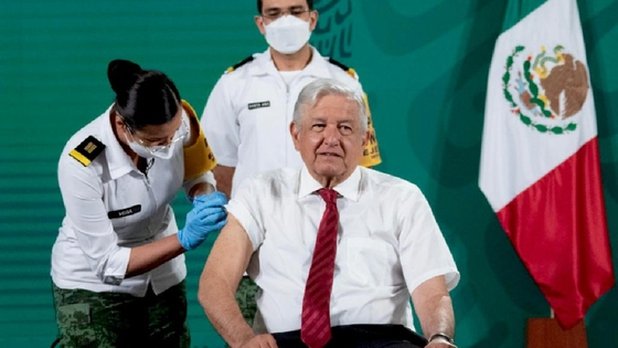 El 20 de mayo, durante La Mañanera, el mandatario fue vacunado con la primera dosis, en donde una enfermera y personal militar acudieron a Palacio Nacional.