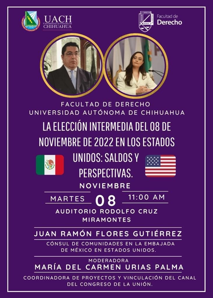 “La elección intermedia del 8 de noviembre en los Estados Unidos: Saldos y perspectivas” es el tema a disertar en el Auditorio “Rodolfo Cruz Miramontes” dirigido a la comunidad universitaria y al público en general con entrada completamente libre.