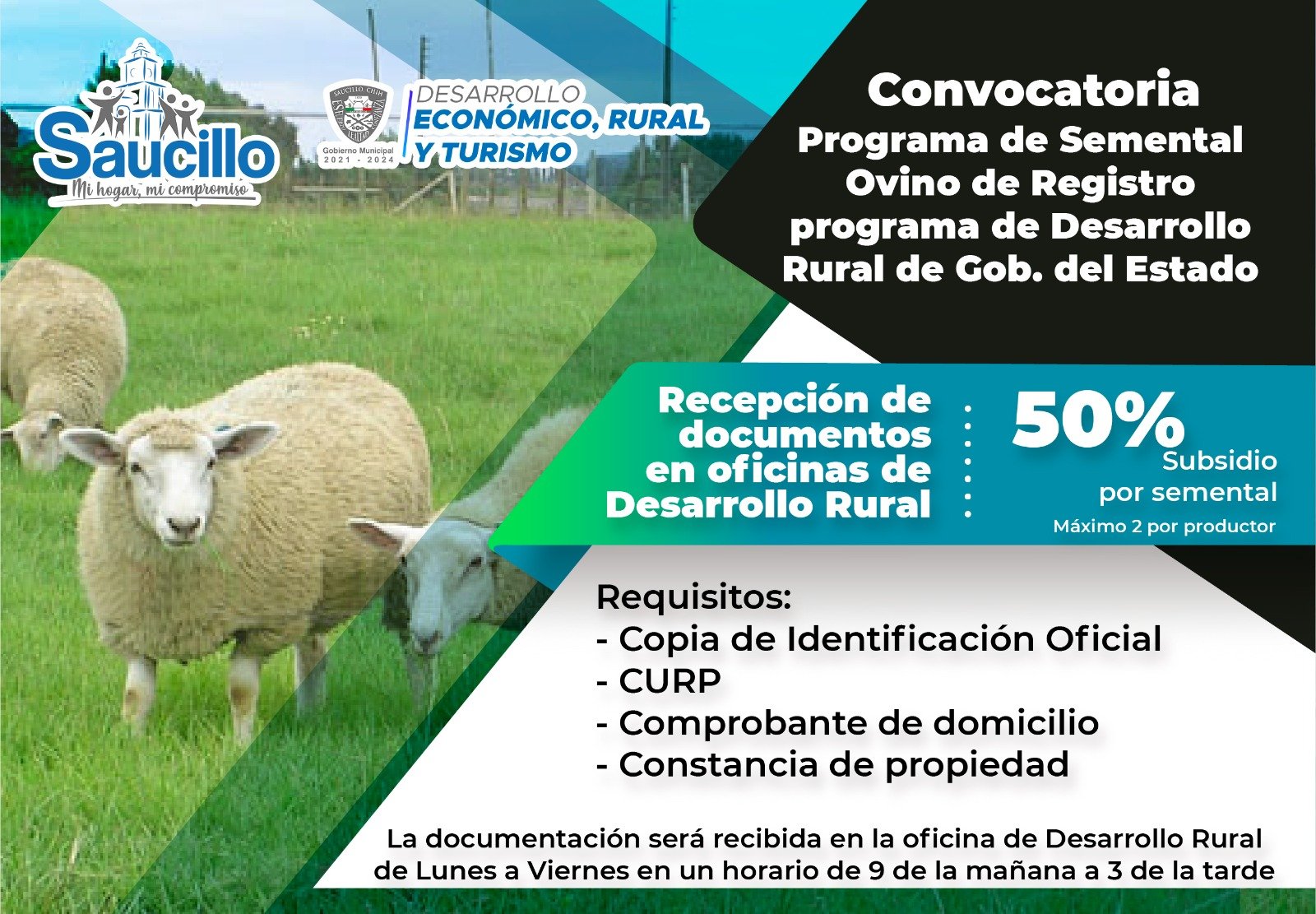 Para obtener más información y aclarar cualquier duda sobre estos programas de apoyo, se recomienda a los interesados acudir a las oficinas de la Dirección de Desarrollo Rural de Saucillo durante el horario establecido.