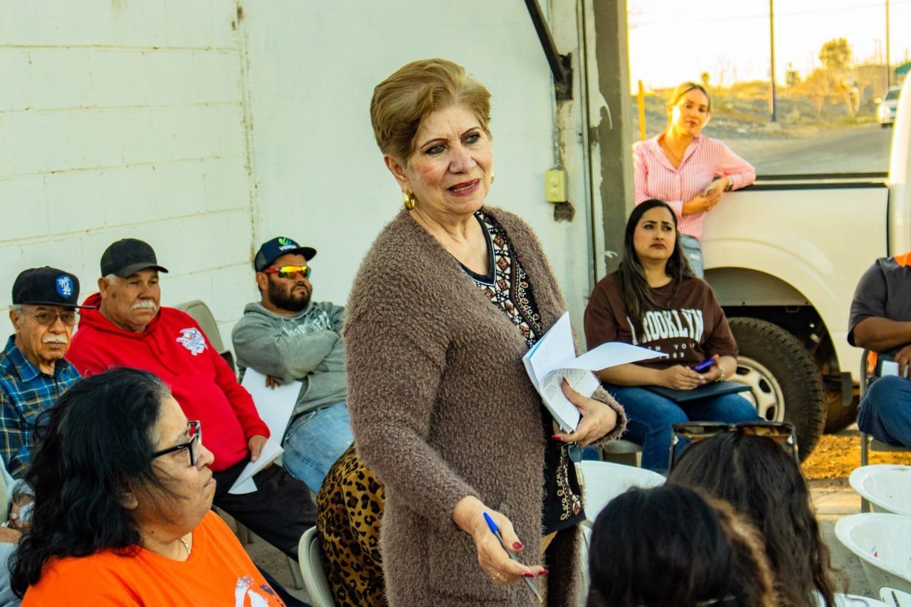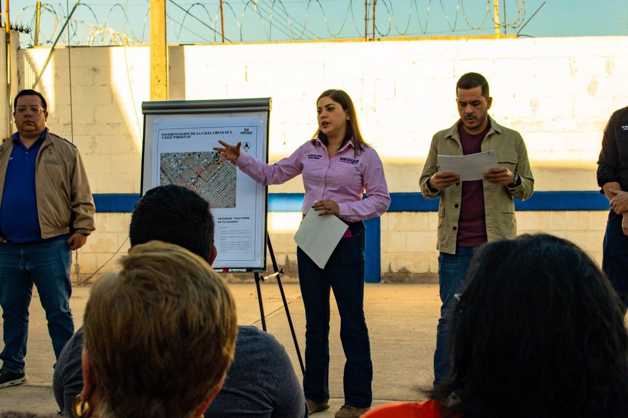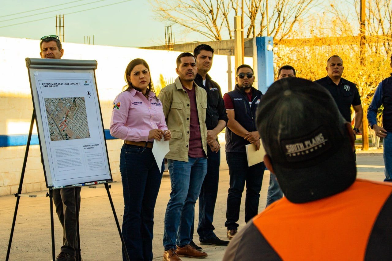 La alcaldesa de Meoqui, Miriam Soto, se reunió con vecinos de la calle Uruguay y Paraguay en la Colonia Obrera para anunciar el inicio del proyecto de pavimentación en esta zona, luego de haber concluido previamente las obras de drenaje pluvial, donde se atendieron dudas, así como los detalles técnicos de la misma.