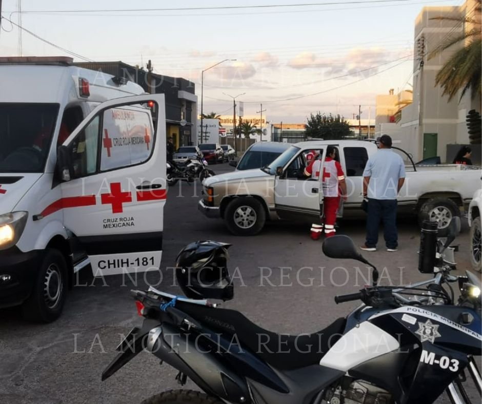 Paramédicos de Cruz Roja delegación Delicias llegó para atender al copiloto del auto negro, quien fue abordado en la ambulancia para trasladarlo al nosocomio.