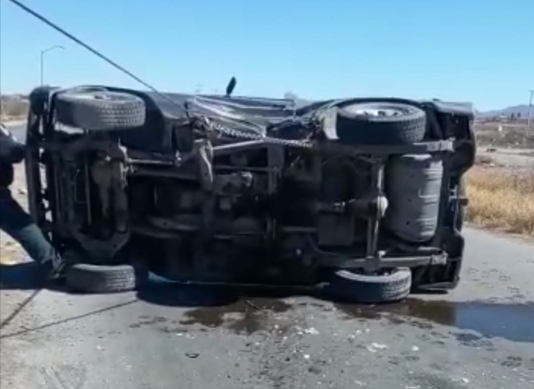 Se registró un aparatoso choque con volcadura esta mañana en el tramo del acceso norte a la colonia Revolución, en el municipio de Delicias, el cual dejó únicamente daños materiales.