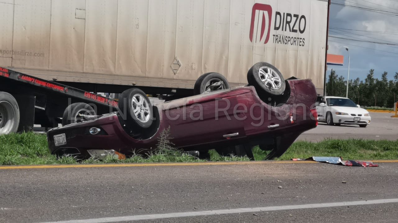 Las unidades de emergencia se movilizaron hasta el kilómetro 133+100 en un sentido de norte a sur. En el lugar localizaron un automóvil de la marca Chevrolet, lineal Aveo, de color guinda, el cual quedó con el toldo para abajo, neumáticos hacia arriba en medio de ambos carriles.