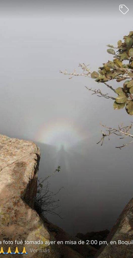 Camargo.- Una foto de una supuesta manifestación,de lo que parece ser una figura ,“celestial”, tomada en lo alto de los cerros que rodean las instalaciones de la Presa La Boquilla,se ha compartido entre ciudadanos de la Región Centro-Sur del Estado, capturada según los rumores durante la misa que se realizó ayer a las 2 de la tarde.