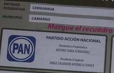 En el recuadro de suplente del candidato Arturo Zubia Fernández, aparece Jorge Apodaca, presidente interino de Camargo, en lugar del suplente de este representante de Acción Nacional el profesor Humberto Silva, hasta el momento se desconoce el porqué de error en las boletas.