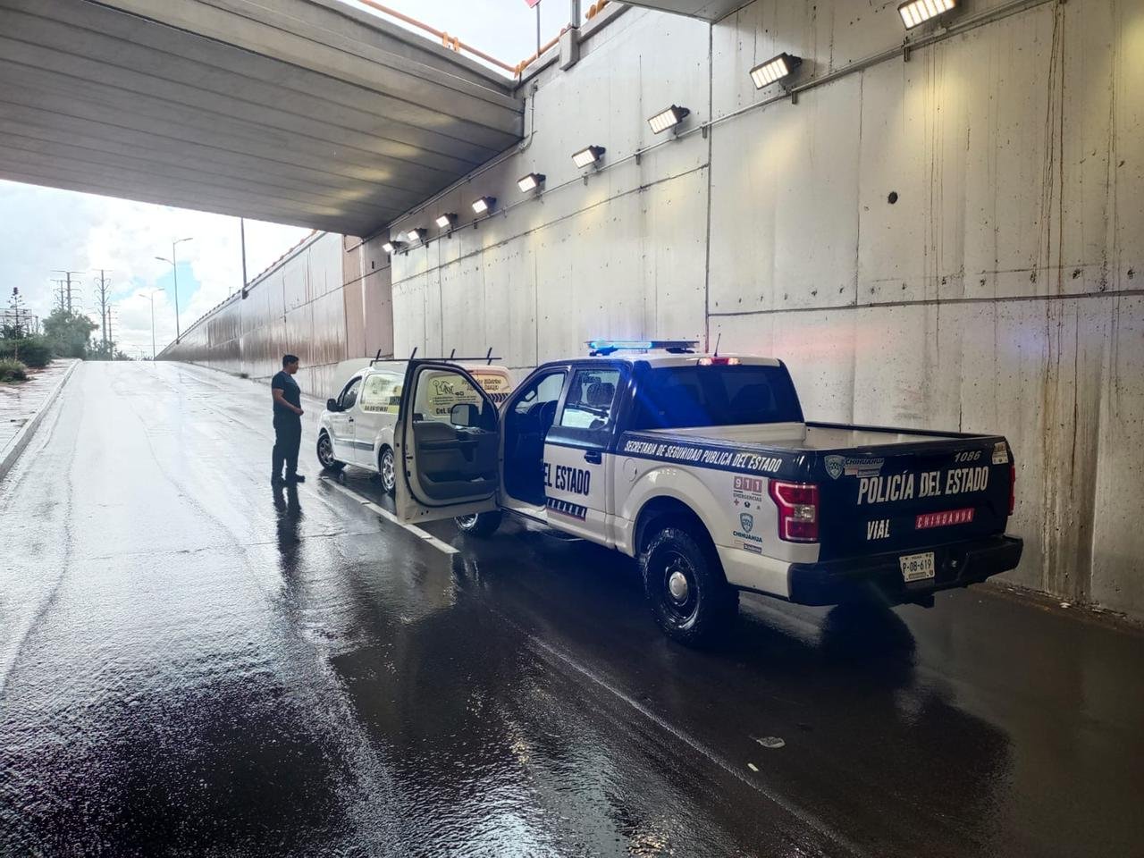 La Secretaría de Seguridad Pública del Estado (SSPE) a través de la Policía Vial, apoyó a los conductores y peatones que quedaron varados tras la inundación de varias calles y avenidas en la ciudad de Chihuahua por la precipitación pluvial de este miércoles 17 de agosto.