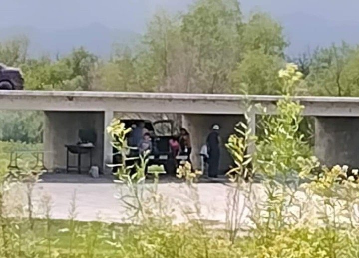 Las imágenes compartidas en redes sociales se aprecia como en la parte baja del puente que va a la comunidad de El Torreón realizan un convivio con mesas, un asador y hasta una camioneta.