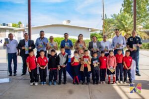La alcaldesa Miriam Soto dio arranque en la Primaria Lázaro Cárdenas al programa “Pinta tu Amor por Meoqui”, el cual consiste en la entrega de un cuadernillo para colorear con diferentes imágenes e iconos del municipio a los alumnos de primer año de nivel primaria, que, en coordinación con el sector educativo, promoverán el aprendizaje y el sentido de pertenencia a las nuevas generaciones.