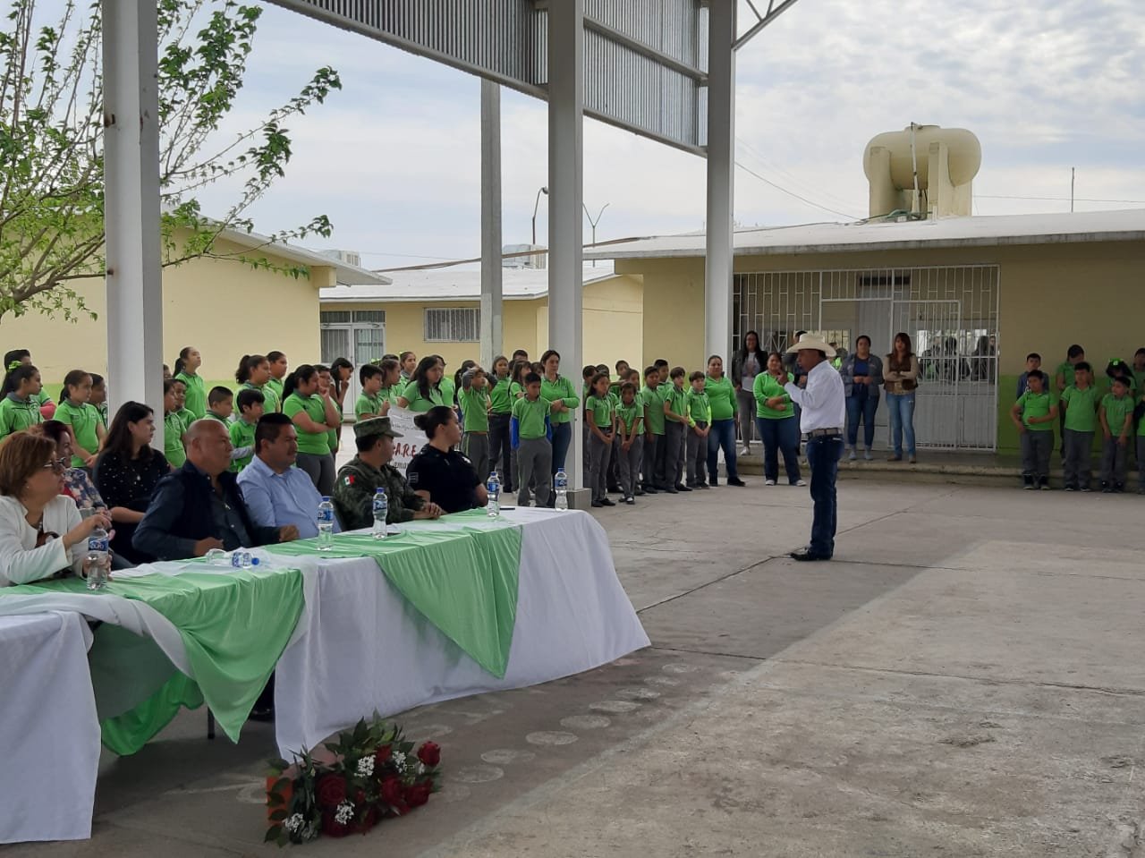 Camargo.- Esta mañana, se dio arranque al programa de prevención delictiva DARE en la primaria Ahuatzin Reyes, con la presencia del alcalde Arturo Zubía y la coordinadora regional del Gobierno Federal, Leticia Loredo; además de coordinadores del programa y representantes de seguridad en la región.