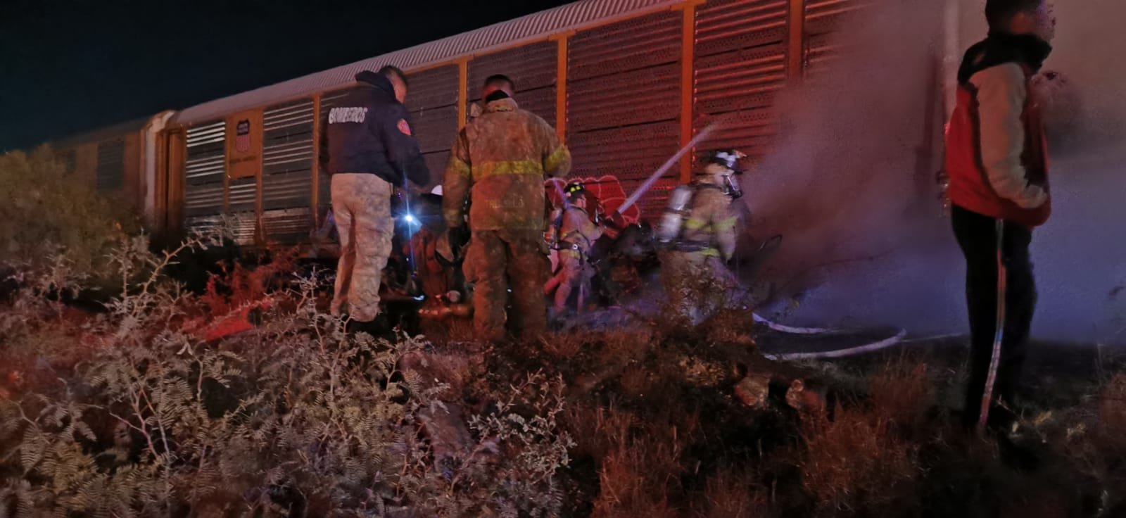 Arrastra tren a tráiler en choque y arde por completo; conductor sufre quemaduras