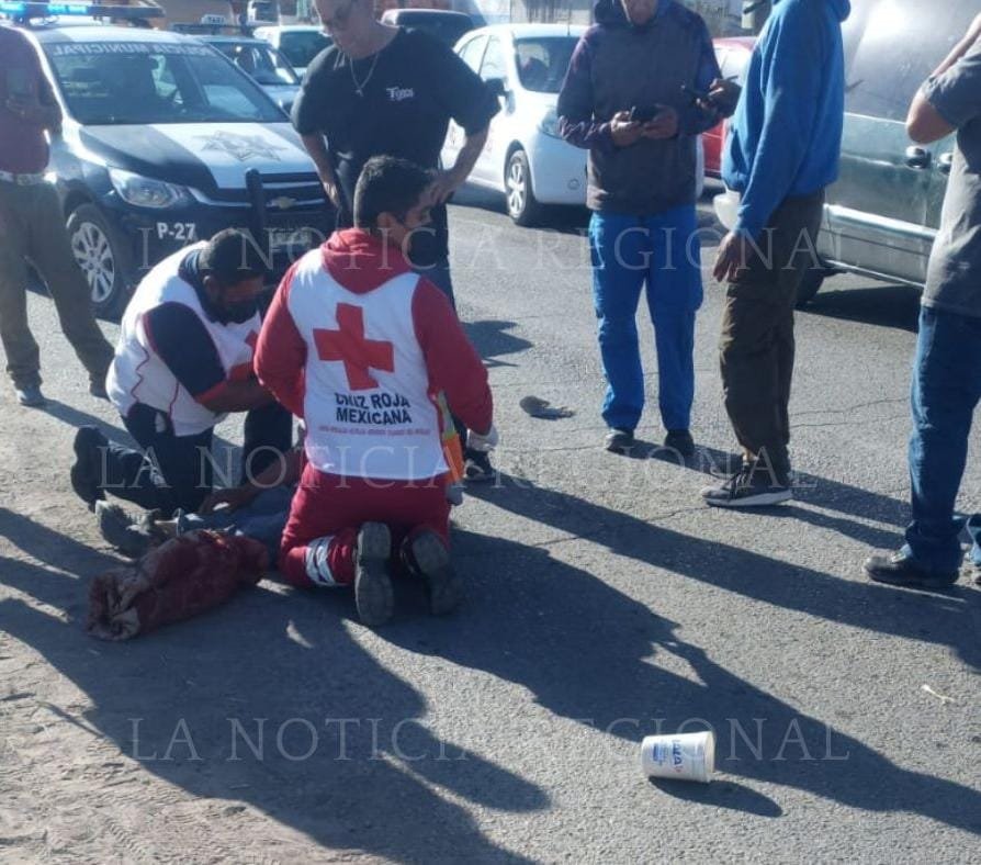Fue el mismo conductor de dos ruedas quien hizo reporte a las autoridades después de atropellar al peatón que se interpuso en su libre circulación. Debido al impacto sufrió un fuerte golpe en uno de sus brazos, motivo por el cual paramédicos de Cruz Roja lo valoraron.