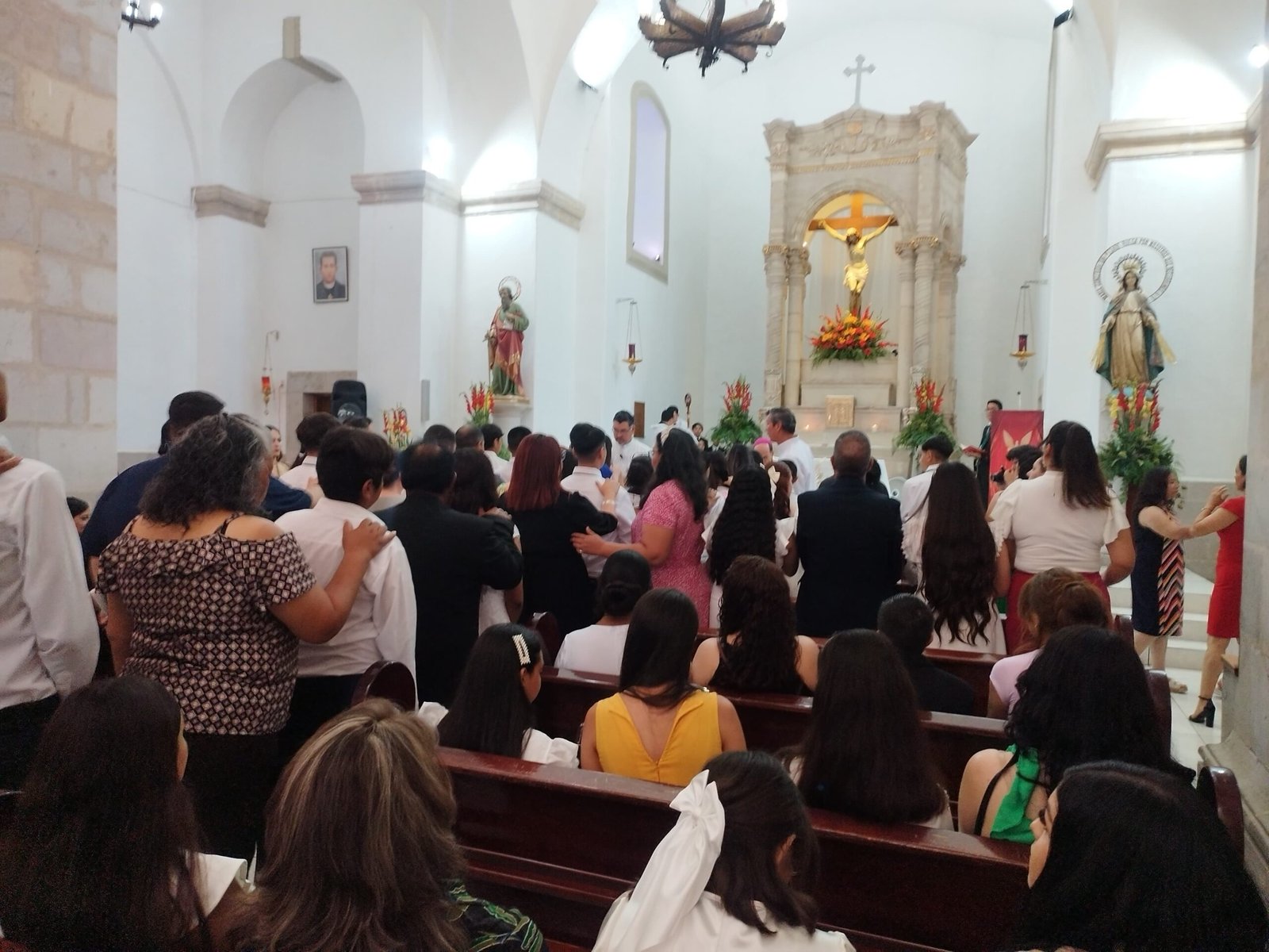 Todos los confirmandos, en compañía de sus padrinos, familiares y feligreses en general presenciaron la Celebración Eucarística presidida por el Arzobispo Don Constancio Miranda Weckmann y el párroco José Trinidad Carrera García.