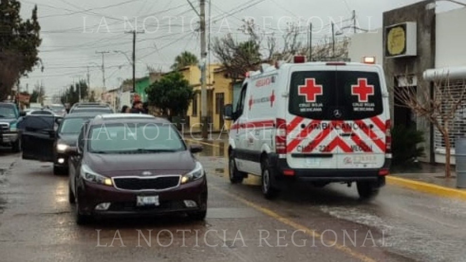 Las unidades de la policía vial y Cruz Roja delegación Meoqui se movilizaron hasta la intersección de la calle Juárez y avenida Allende.