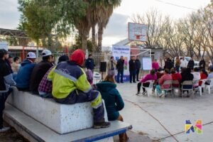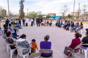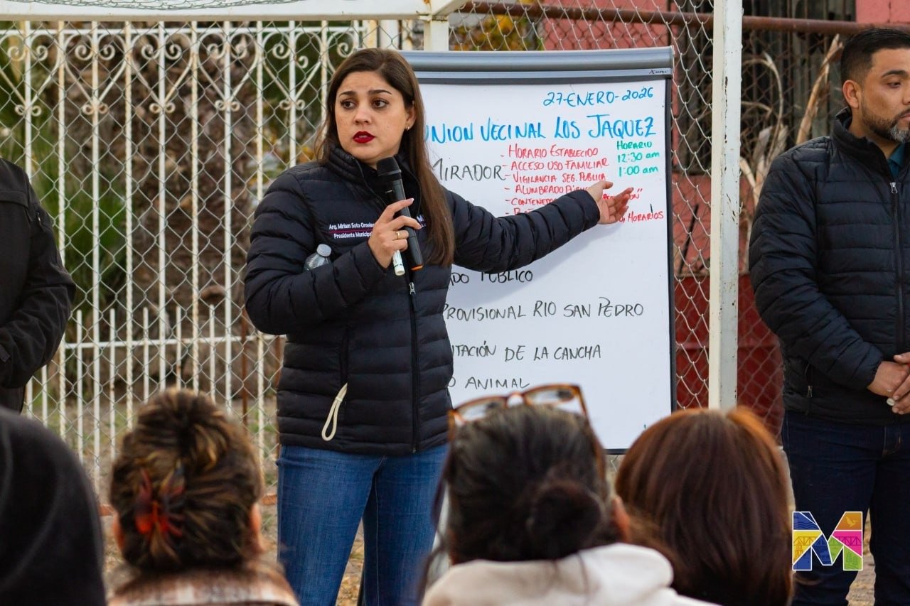 La alcaldesa de Meoqui, Miriam Soto, junto con su Gabinete Municipal, acudió a la comunidad de Los Jáquez, donde sostuvo reunión con vecinos, en la que se escucharon de primera mano las necesidades de los habitantes y se lograron importantes acuerdos para el uso de espacios públicos.