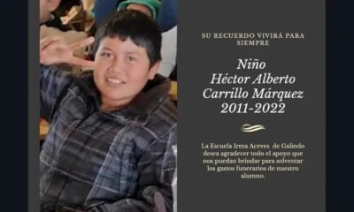 Familiares del niño Héctor Alberto Carrillo Márquez solicitaron el apoyo de la ciudadanía para poder cubrir los gastos de su funeral. “Quien guste apoyarnos con lo...