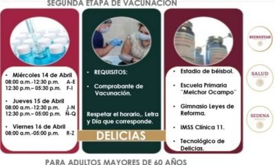 La Secretaría de Bienestar informó que ya está lista la segunda etapa de vacunación en Delicias. Los adultos mayores deberán aplicarse la segunda dosis únicamente en...