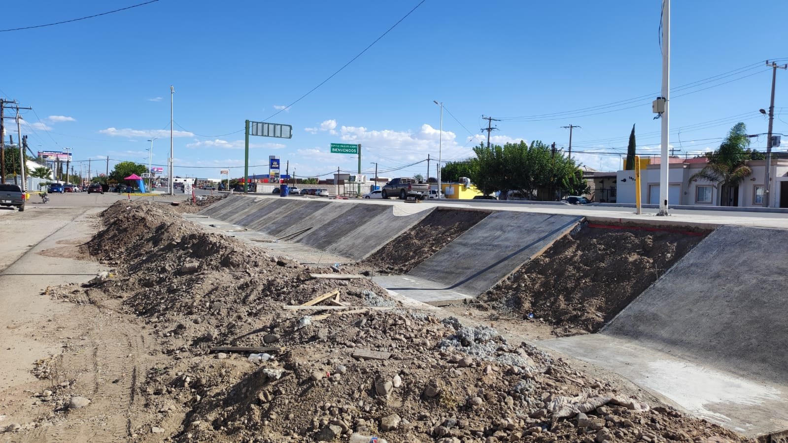 Al 80 por ciento avanza la pavimentación de vialidad Bugambilias en el municipio de Meoqui, donde personal de la Junta Municipal de Agua y Saneamiento (JMAS) trabajan en la habilitación de instalaciones hidrosanitarias, esto como parte de la Rehabilitación Integral de la Calle Aldama.