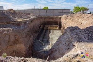 El Gobierno Municipal de Meoqui inició la construcción de un cárcamo de bombeo en la intersección de la calle Bugambilia y 20 de Noviembre, ubicado detrás del recinto ferial, obra considerada prioritaria para prevenir acumulamientos de agua durante la temporada de lluvias, lo cual permitirá desahogar aguas pluviales provenientes de las Colonias Fonhapo, Villas de San Pedro y calles aledañas de la zona.