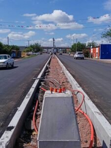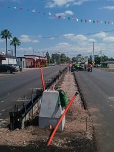 Ulises Escobar, director de Obras Públicas del municipio, informó que la obra comprende más de 300 metros lineales de construcción. Detalló que se realizará la instalación de guarniciones de concreto y la pavimentación del arroyo vehicular con concreto hidráulico, lo que garantizará mayor durabilidad de la vialidad. Asimismo, explicó que se llevará a cabo el cambio de las líneas de agua potable y drenaje, ya que se trata de una zona donde las calles conectan con drenes pluviales que desembocan en la calle Ferrocarril.