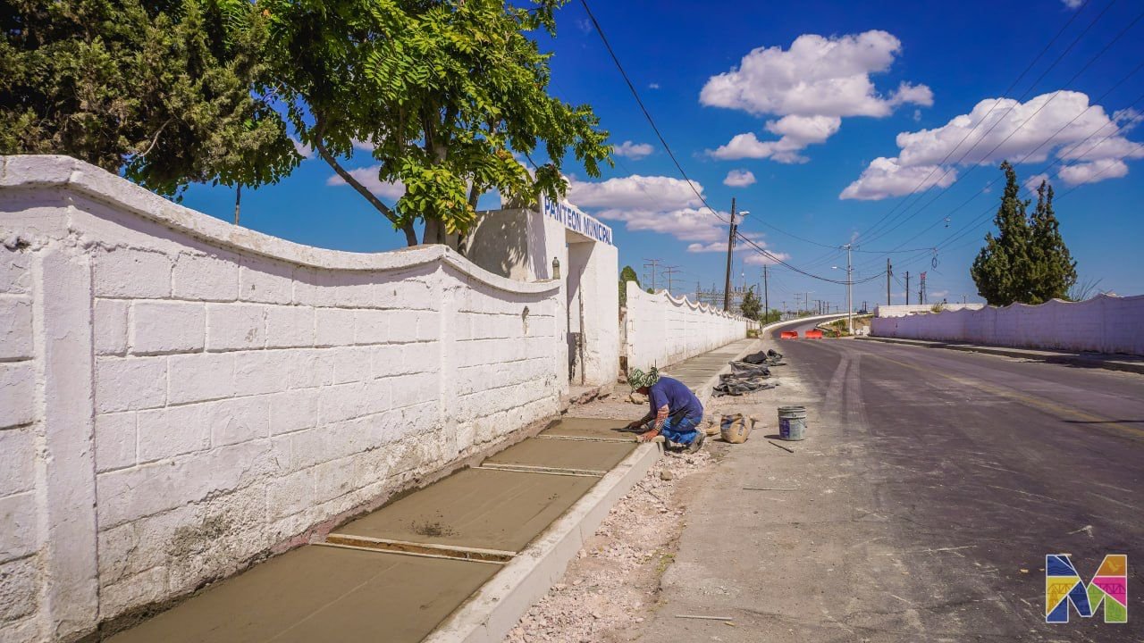 Avanzan al 85% los trabajos en las banquetas del Panteón Municipal de Meoqui