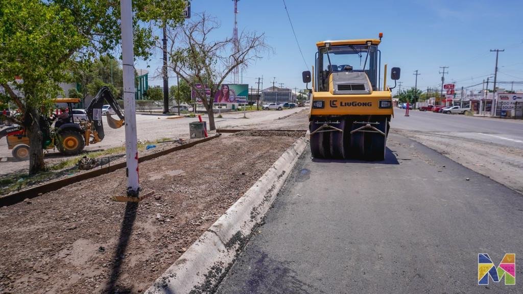 Con trabajos en base de lateral de la Calle Bugambilias de Meoqui, avanza la pavimentación de la Primera Etapa del Acceso Norte, esto como parte de la Rehabilitación Integral de la Calle Aldama, una obra con inversión sin precedente en el municipio, así lo informó Ulises Escobar, director de Obras Públicas Municipales, quien compartió que luego de esto culminarán guarniciones y la carpeta asfáltica del cuerpo central en esta vía.