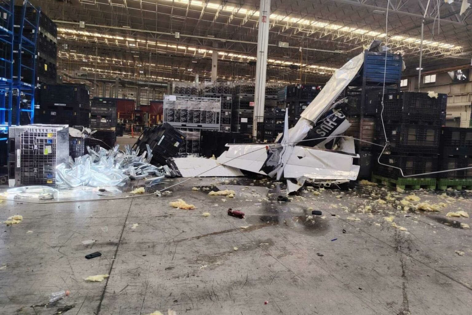 Autoridades de la entidad descartaron personas lesionadas en la nave industrial en la que cayó el avión en Ramos Arizpe.