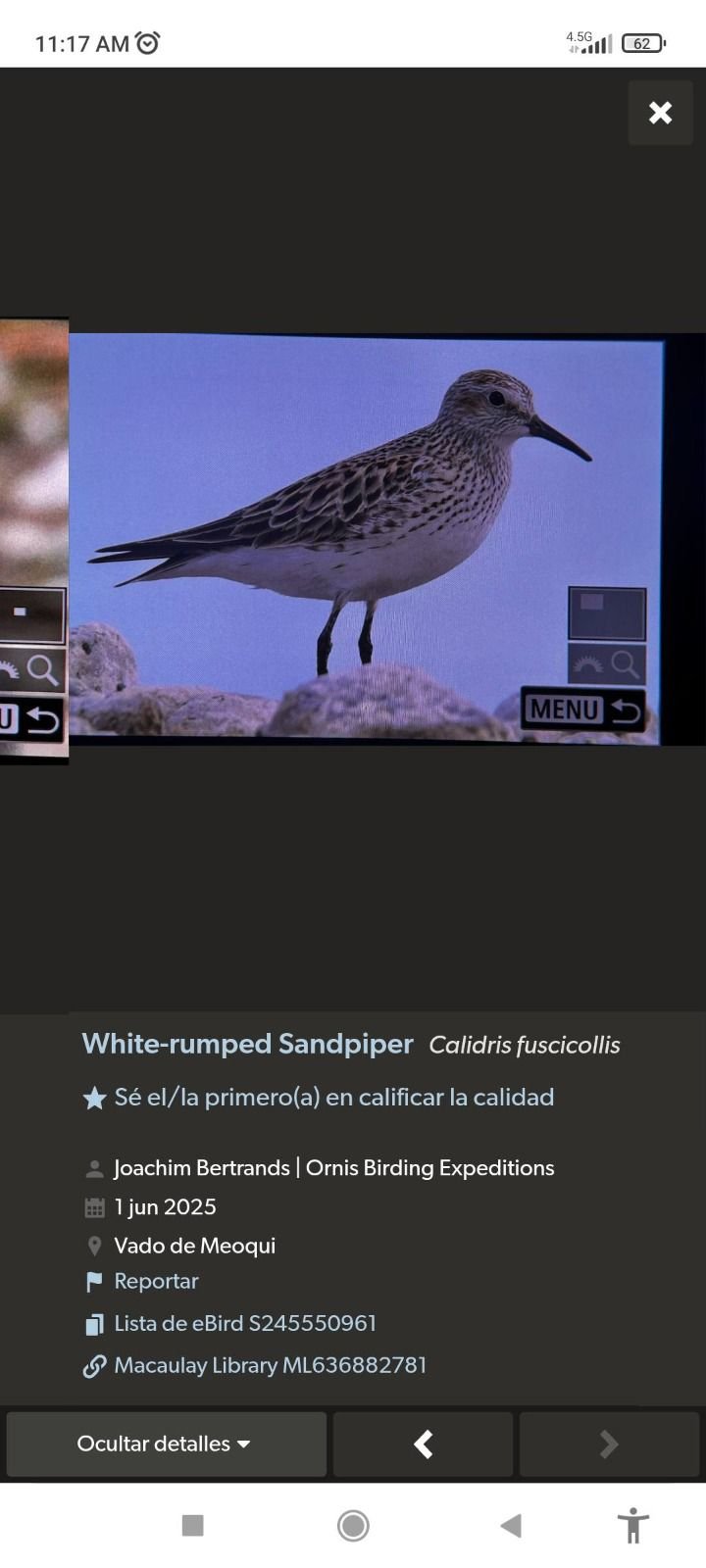El hallazgo fue confirmado por ocho observadores, quienes lograron ver con claridad la característica rabadilla blanca del ave, lo que eliminó dudas sobre su identificación. “El Vado sigue dando agradables sorpresas”, señalaron los participantes del recorrido.
