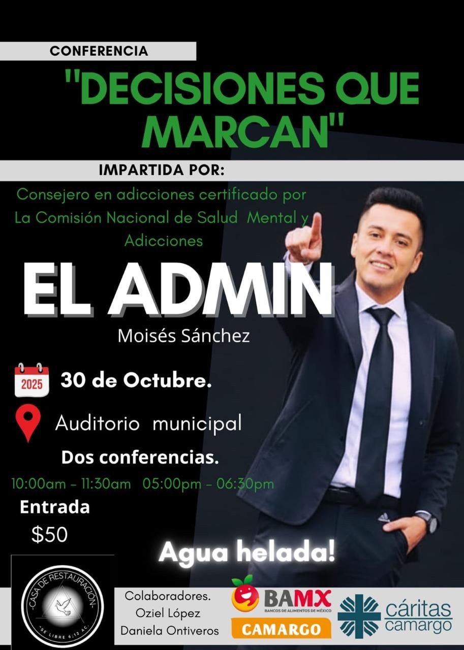 El Banco de Alimentos Cáritas Camargo invita a la comunidad a participar en la conferencia “Decisiones que marcan”, impartida por el consejero en adicciones certificado por la Comisión Nacional de Salud Mental y Adicciones, Moisés Sánchez.