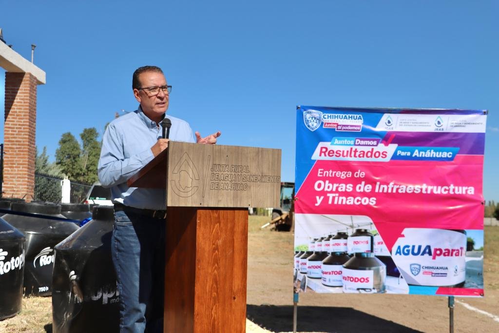 Con el objetivo de garantizar el acceso al almacenamiento de agua potable en la Sección de Anáhuac, municipio de Cuauhtémoc, la Junta Central de Agua y Saneamiento (JCAS), a través del programa “Agua para Todos”, destinó una inversión de 80 mil pesos para beneficiar a 50 familias de la zona mediante la donación de igual número de tinacos de 750 litros cada uno.