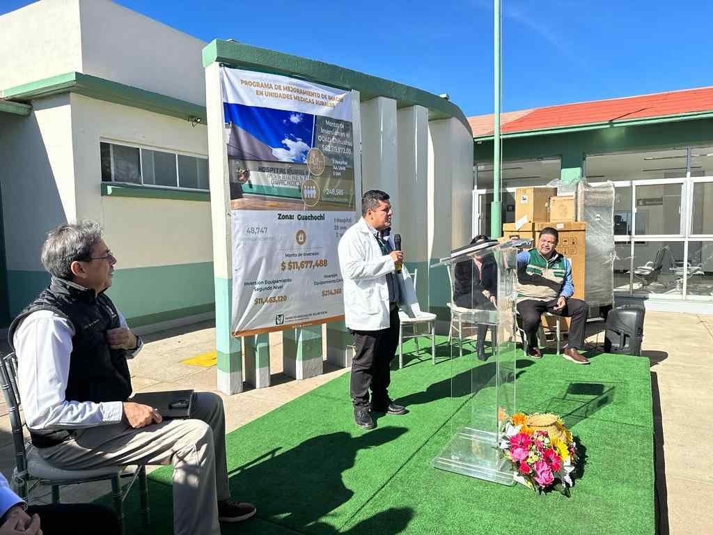 La ceremonia oficial de esta entrega se llevó a cabo este jueves 30 de noviembre, en las instalaciones del Hospital IMSS-Bienestar Guachochi, y estuvo encabezado por el titular de la Coordinación de Atención Integral a la Salud del Programa IMSS-Bienestar, doctor Jonathan Max Melgoza Salazar, en representación del titular de la Unidad del Programa IMSS-Bienestar, doctor Manuel Cervantes Ocampo, así como por el titular del IMSS en el estado, doctor Juan Carlos de la Fuente Zuno y otras personalidades.