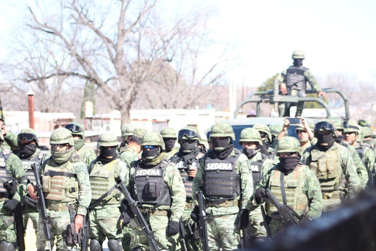 Camargo.- Cerca de 100 elementos y otros tantos que continúan llegando al acceso hacia las compuertas de la Presa La Boquilla lucen visiblemente armados y se encuentran en pocision de “barrera” sin emitir hasta el momento declaración o realizar acción alguna.